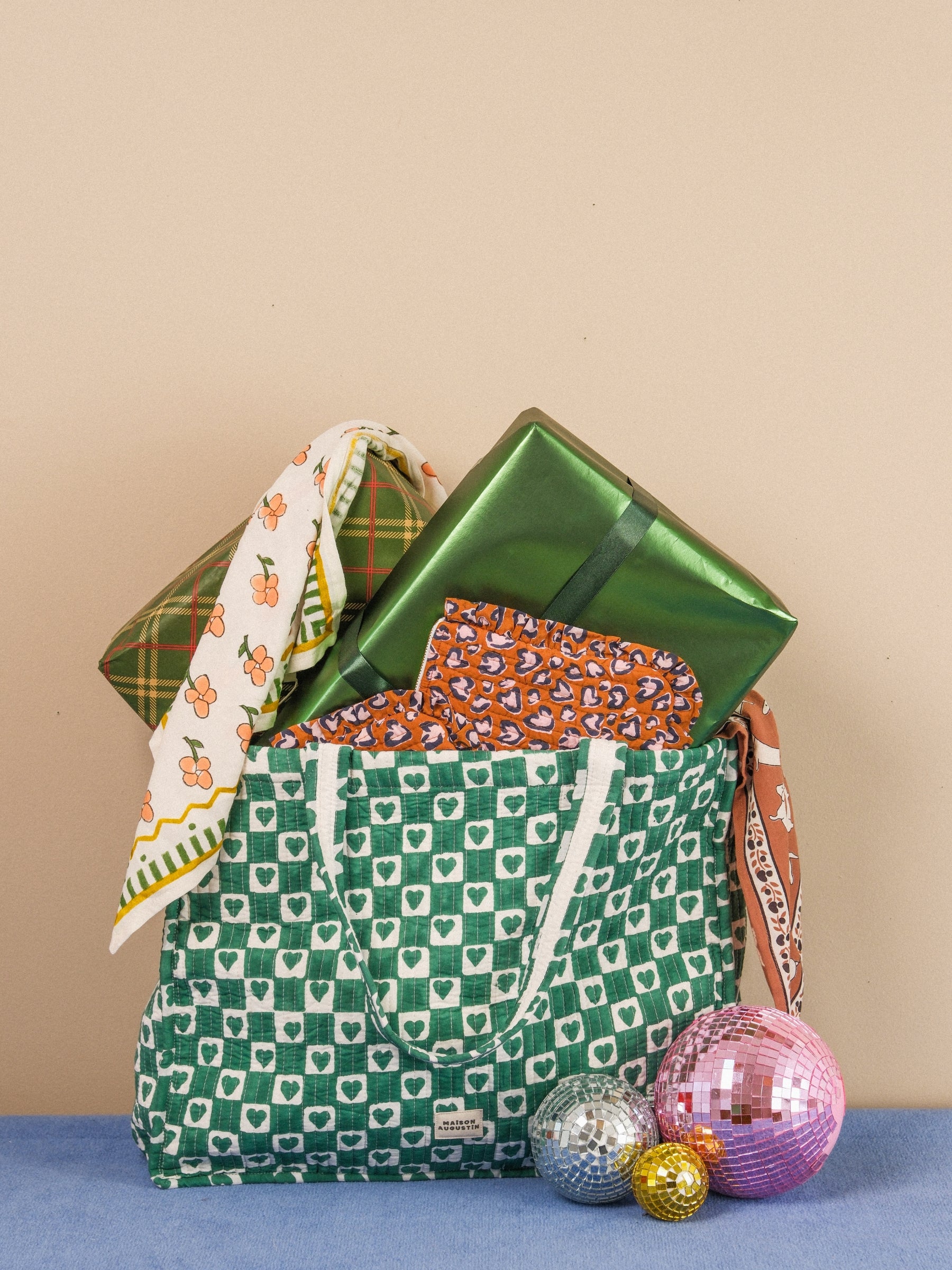 Ce sac a été imprimé de manière artisanale selon la technique d'impression blockprint et confectionné à Jaipur en Inde.