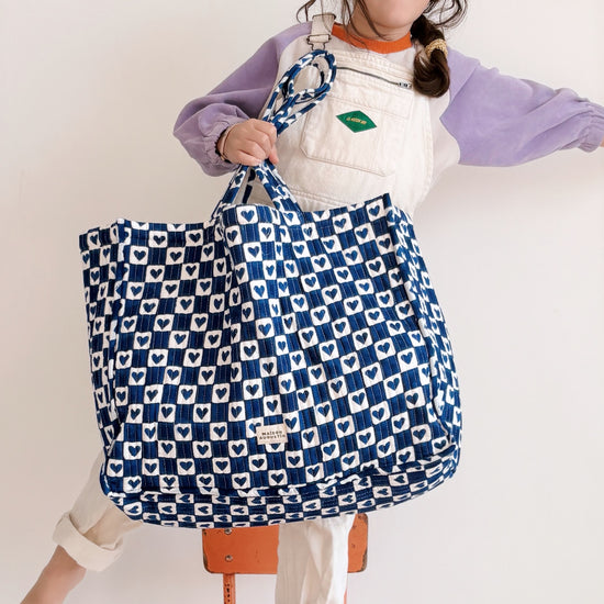 Ce sac a été imprimé de manière artisanale selon la technique d'impression blockprint et confectionné à Jaipur en Inde.