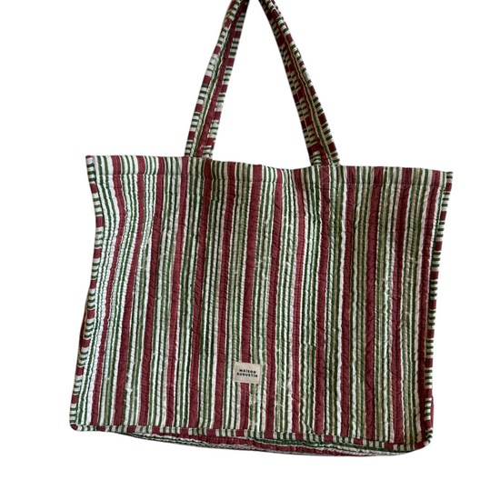 Notre sac cabas est confectionné dans notre imprimé Stripe exclusif