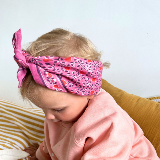 Un foulard pour maman (100x100 cm) et un foulard pour enfant (50x50 cm) : l’accessoire idéal pour créer des looks matchy-matchy plein de style et de tendresse.