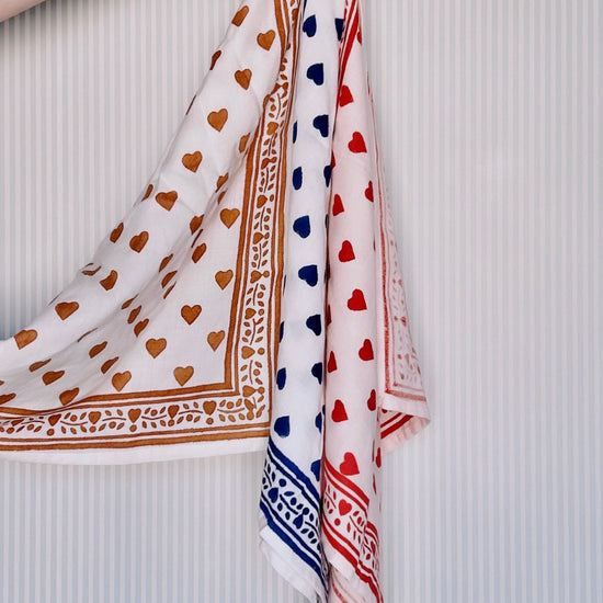 Il est confectionné artisanalement grâce à la technique indienne du block-print, les couleurs sont réalisées à partir de pigments naturels.