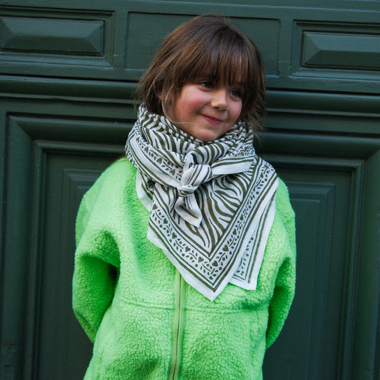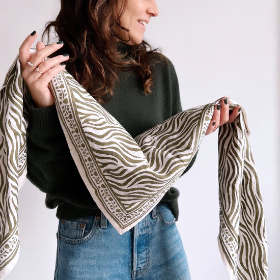 Il est confectionné artisanalement grâce à la technique indienne du block-print, les couleurs sont réalisées à partir de pigments naturels.