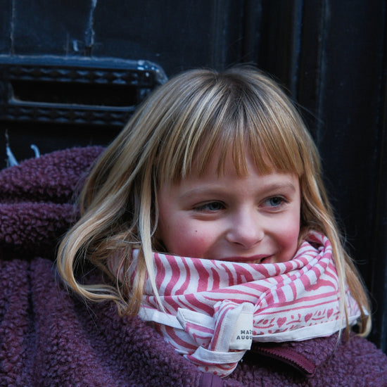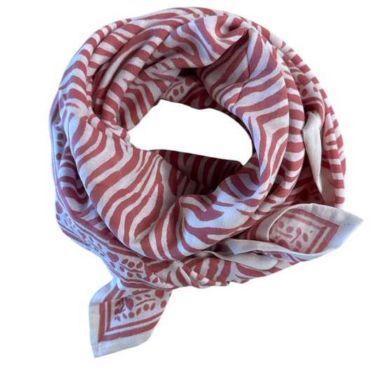 Il est confectionné artisanalement grâce à la technique indienne du block-print, les couleurs sont réalisées à partir de pigments naturels.