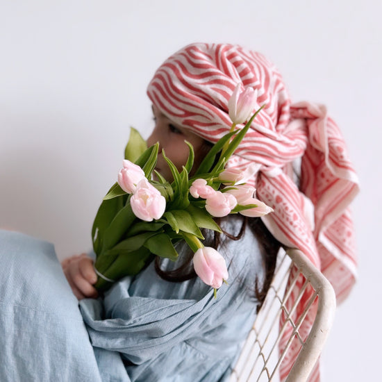 Nos créations prennent ensuite vie dans nos ateliers partenaires en Inde, certifiés et reconnus pour leur savoir-faire ancestral. Là-bas, des artisans perpétuent l’art du blockprint, une technique traditionnelle d’impression au tampon de bois sculpté à la main. Chaque geste, précis et patient, confère au tissu un caractère singulier, empreint d’authenticité et d’irrégularités précieuses qui rendent chaque pièce unique.