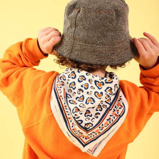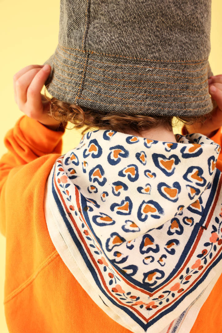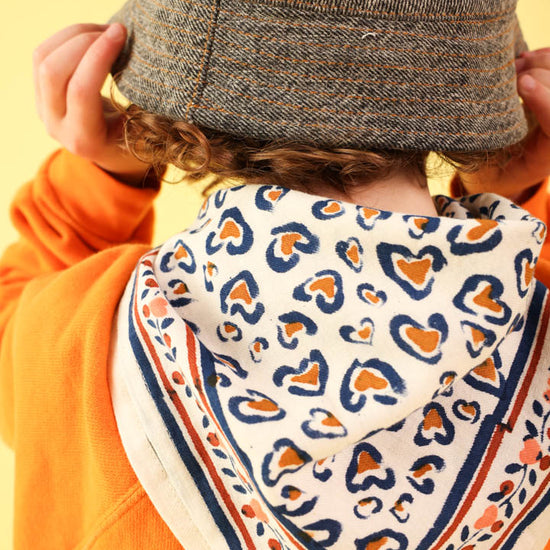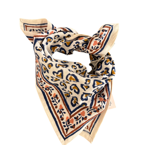 Il est confectionné artisanalement grâce à la technique indienne du block-print, les couleurs sont réalisées à partir de pigments naturels.