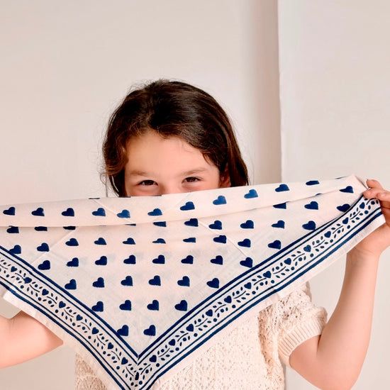 Il est confectionné artisanalement grâce à la technique indienne du block-print, les couleurs sont réalisées à partir de pigments naturels.