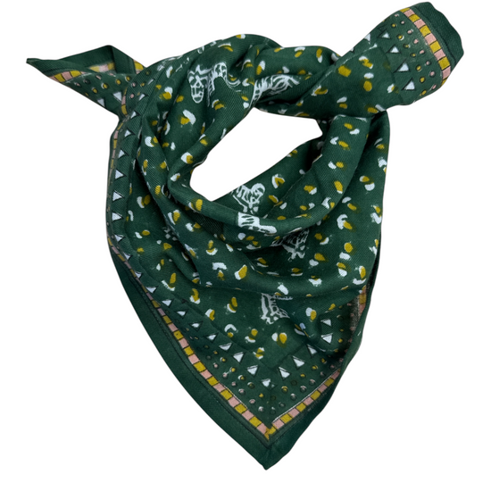 Il est confectionné artisanalement grâce à la technique indienne du block-print, les couleurs sont réalisées à partir de pigments naturels.