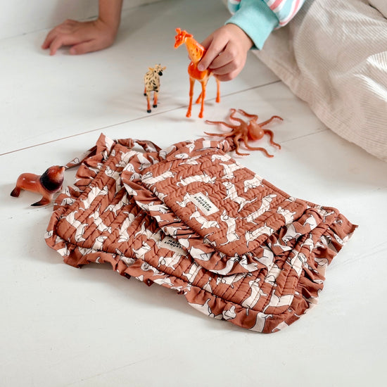 Nos créations prennent ensuite vie dans nos ateliers partenaires en Inde, certifiés et reconnus pour leur savoir-faire ancestral. Là-bas, des artisans perpétuent l’art du blockprint, une technique traditionnelle d’impression au tampon de bois sculpté à la main. Chaque geste, précis et patient, confère au tissu un caractère singulier, empreint d’authenticité et d’irrégularités précieuses qui rendent chaque pièce unique.