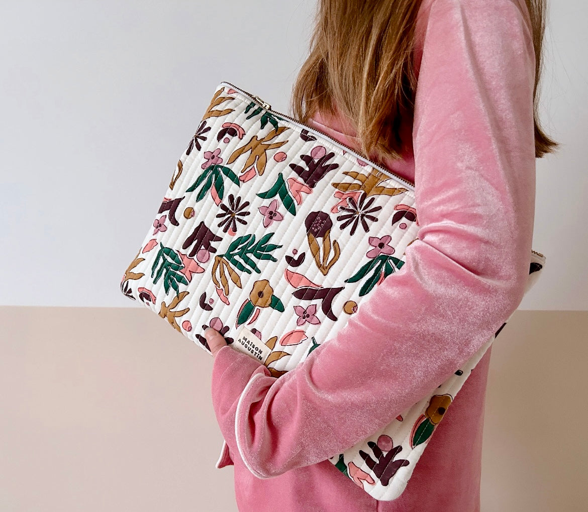 Cette trousse a été imprimé de manière artisanale selon la technique d'impression blockprint et confectionné à Jaipur en Inde.
