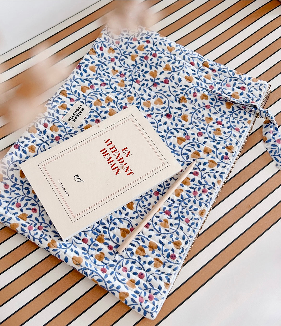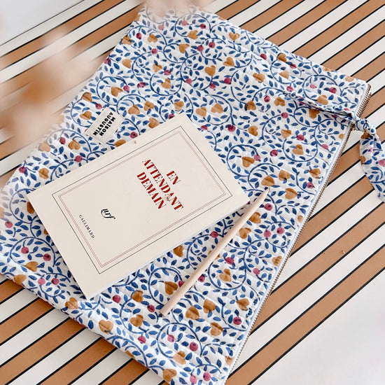 Cette trousse a été imprimé de manière artisanale selon la technique d'impression blockprint et confectionné à Jaipur en Inde.