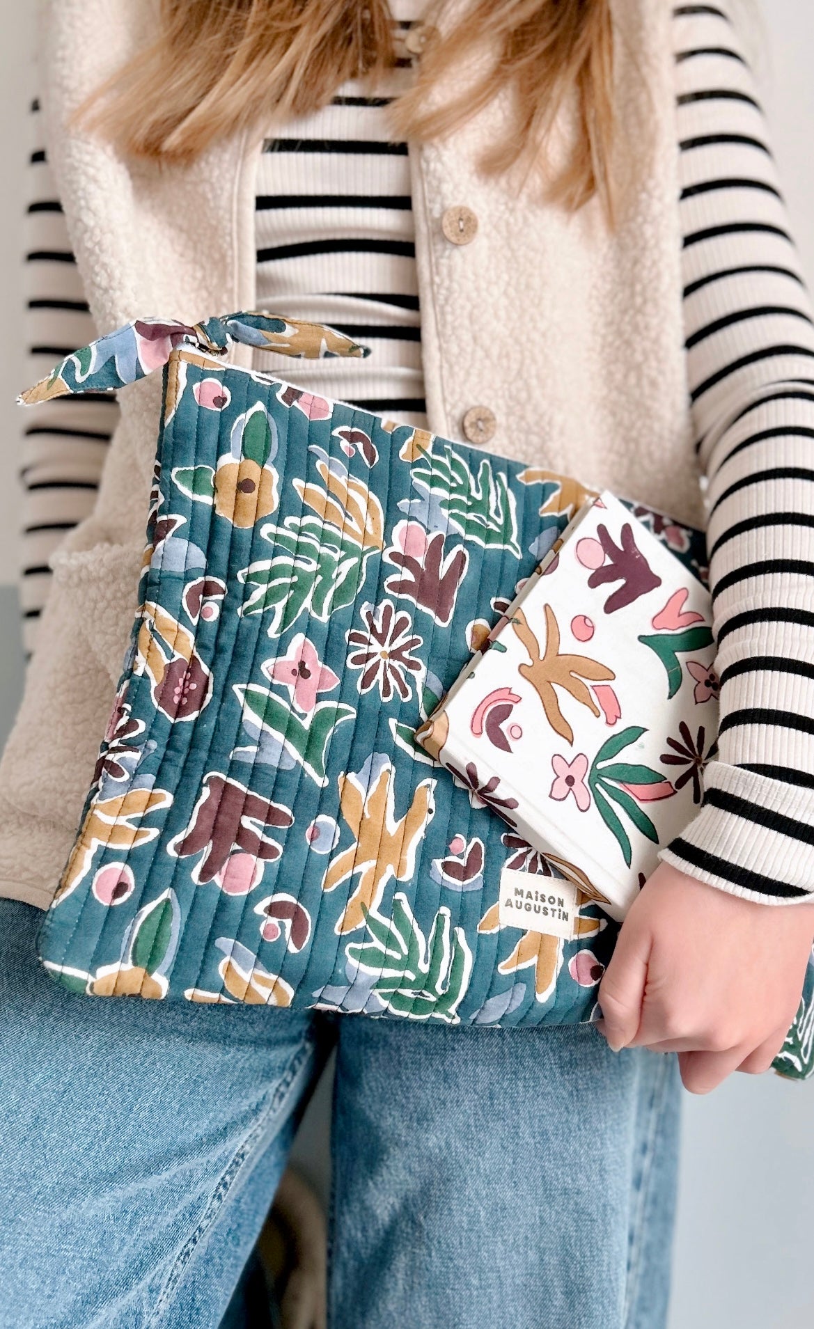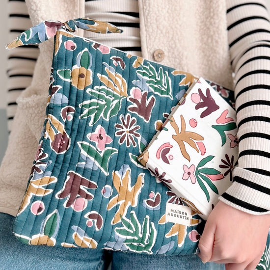 Cette trousse a été imprimé de manière artisanale selon la technique d'impression blockprint et confectionné à Jaipur en Inde.