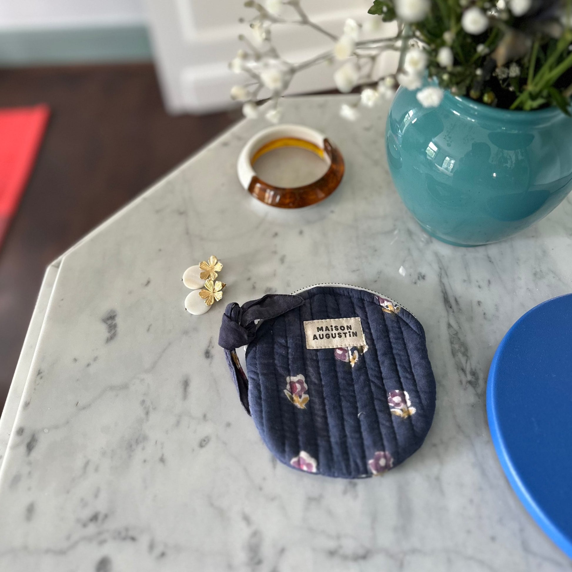 Ce porte monnaie a été imprimé de manière artisanale selon la technique d'impression blockprint et confectionné à Jaipur en Inde.