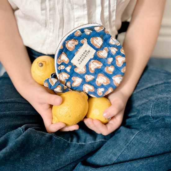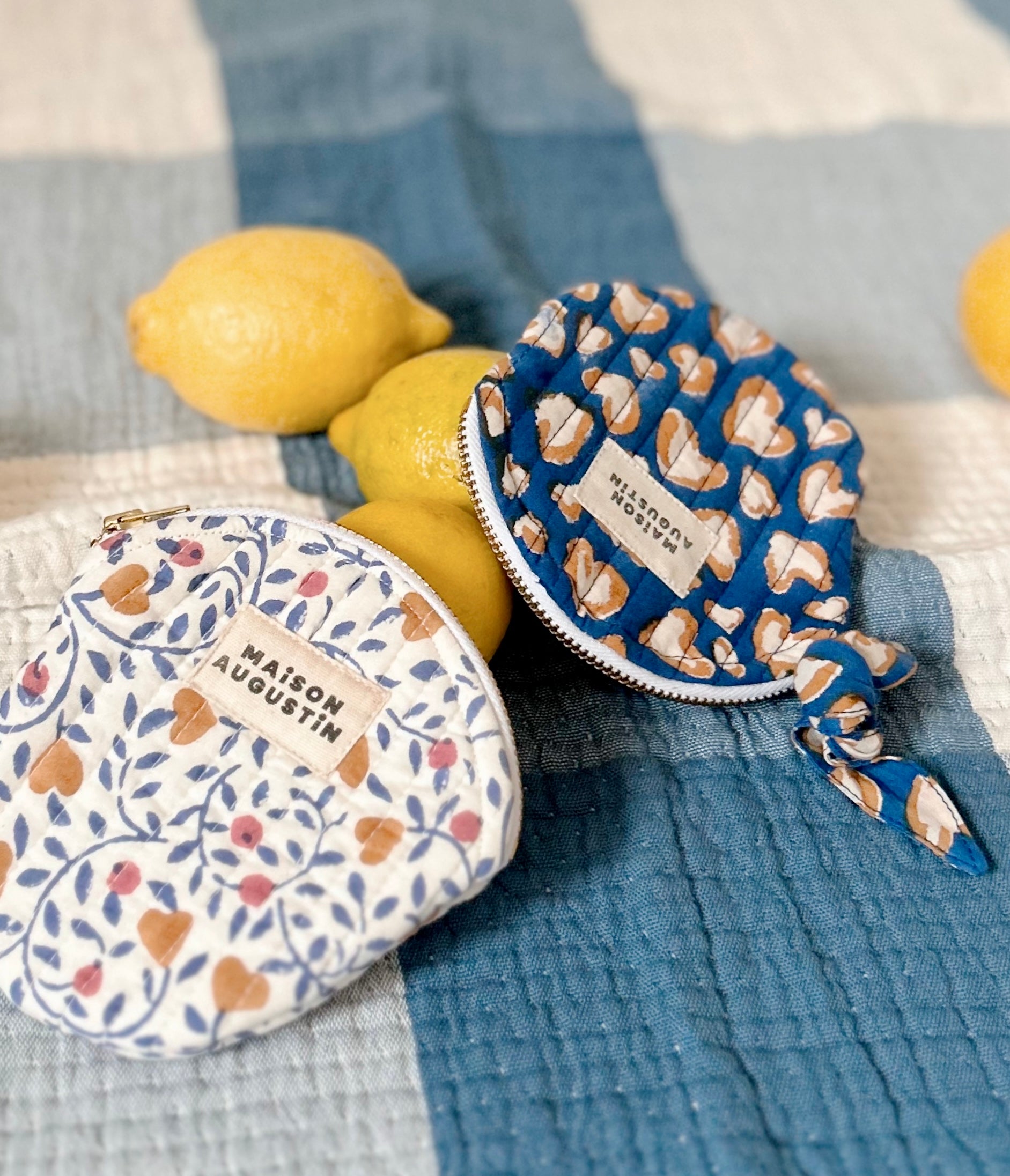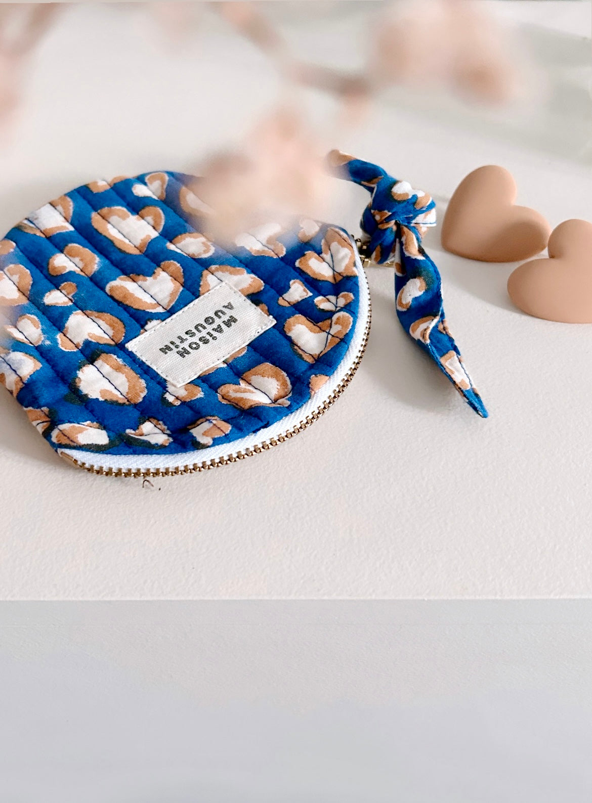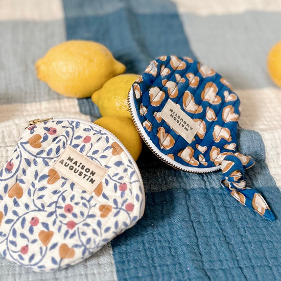 Ce porte monnaie a été imprimé de manière artisanale selon la technique d'impression blockprint et confectionné à Jaipur en Inde.