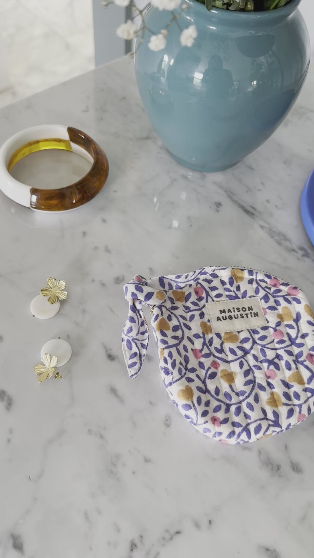Ce porte monnaie a été imprimé de manière artisanale selon la technique d'impression blockprint et confectionné à Jaipur en Inde.
