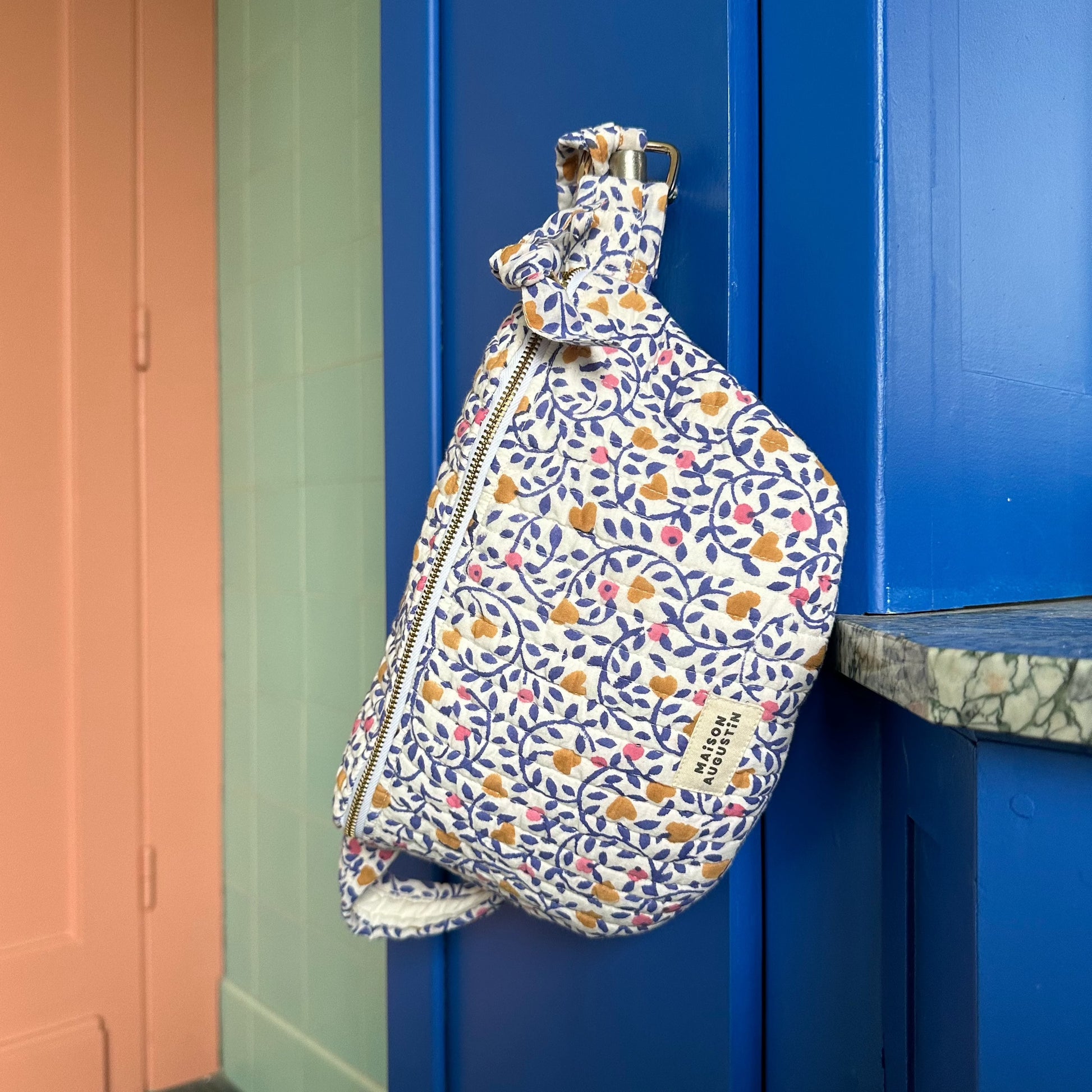 Ce sac a été imprimé de manière artisanale selon la technique d'impression blockprint et confectionné à Jaipur en Inde.
