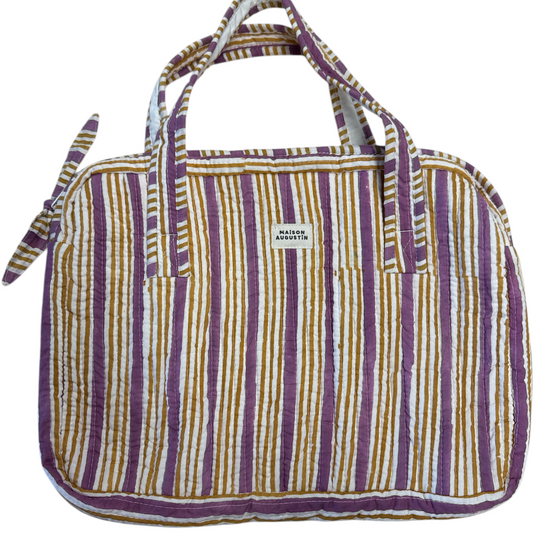 Notre sac de voyage en coton est parfait pour accompagner vos escapades, que ce soit pour un week-end ou comme sac pratique au quotidien. Ce sac est conçu avec une poche intérieure, idéale pour y glisser vos petits essentiels en toute simplicité. Son design unique est réalisé dans notre imprimé exclusif Stripe, qui lui confère un style intemporel et élégant.