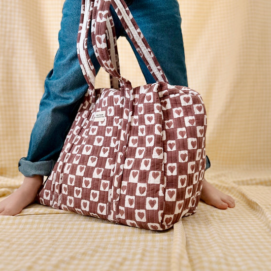 Notre grand sac week end en coton est idéal comme sac à langer ou pour partir en week end .
