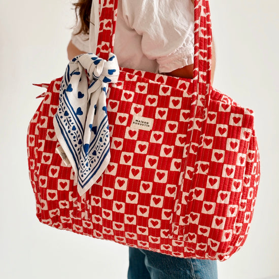 Ce sac a été imprimé de manière artisanale selon la technique d'impression blockprint et confectionné à Jaipur en Inde.