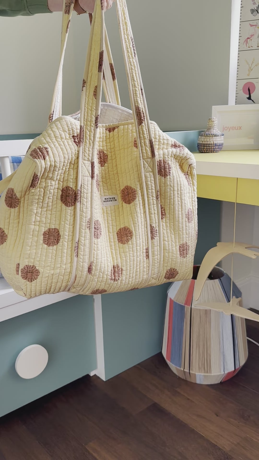 Notre grand sac week end en coton est idéal comme sac à langer ou pour partir en week end .