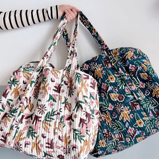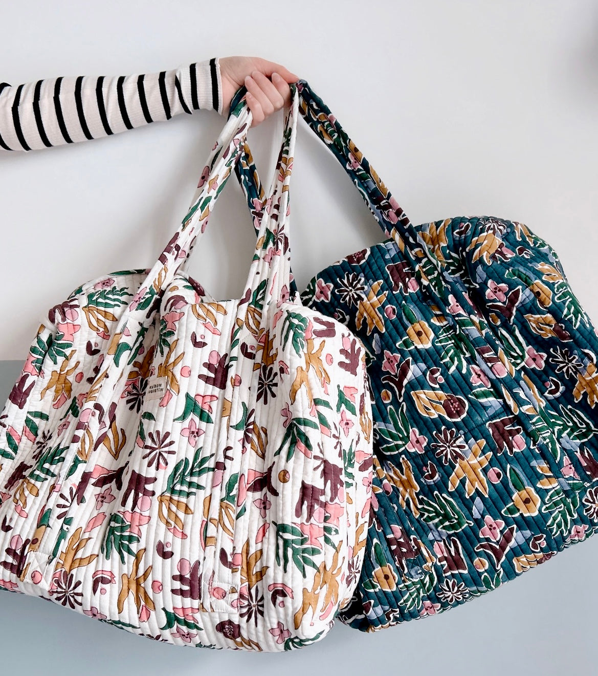 Ce sac a été imprimé de manière artisanale selon la technique d'impression blockprint et confectionné à Jaipur en Inde.