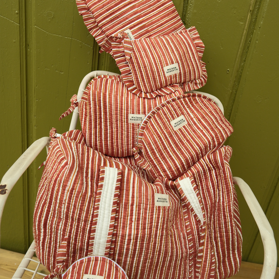 Nos créations prennent ensuite vie dans nos ateliers partenaires en Inde, certifiés et reconnus pour leur savoir-faire ancestral. Là-bas, des artisans perpétuent l’art du blockprint, une technique traditionnelle d’impression au tampon de bois sculpté à la main. Chaque geste, précis et patient, confère au tissu un caractère singulier, empreint d’authenticité et d’irrégularités précieuses qui rendent chaque pièce unique.