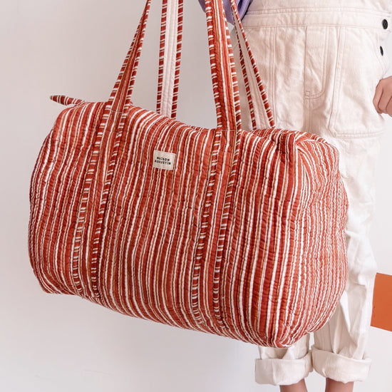 Notre grand sac week end en coton est idéal comme sac à langer ou pour partir en week end .