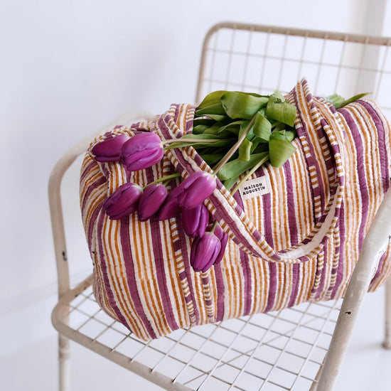 Notre sac week end est confectionné dans notre imprimé Stripe exclusif.