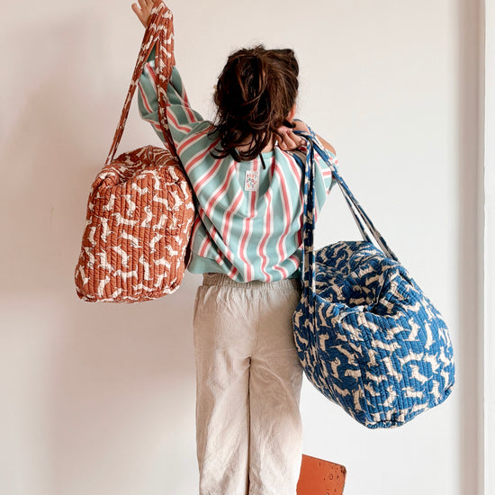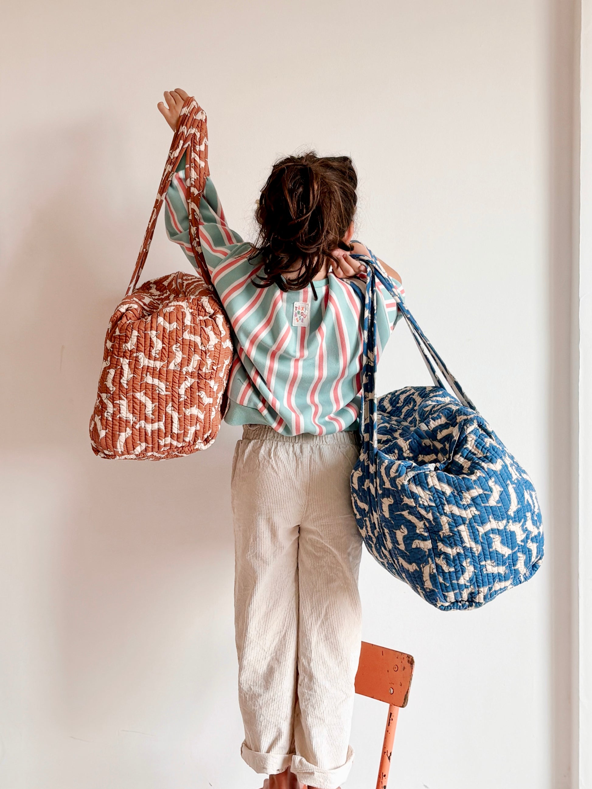 Notre grand sac week end en coton est idéal comme sac à langer ou pour partir en week end .