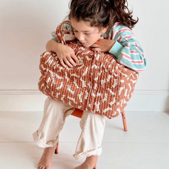 Notre grand sac week end en coton est idéal comme sac à langer ou pour partir en week end .