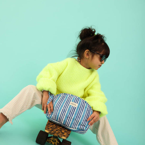 Notre trousse est confectionnée dans notre imprimé Stripe exclusif.
